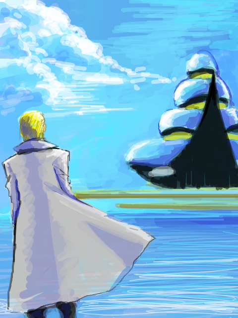 バラムガーデンが描きたい!→やっぱり青空でしょ→バラムって行ったら海だよね→あれ?なんかEDがそんなイメージ→ならサイファーも足しちゃえ
