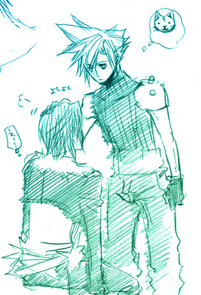 スコールの髪ってふわふわさらさらしていそうで触りたいので、代わりにクラウドに触ってもらいました。